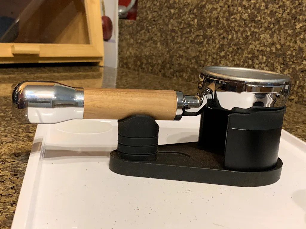 The result is a puck prep stand that adapts to your equipment rather than forcing a one-size-fits-all configuration. Whether you are using a bottomless or spouted portafilter, straight or angled handle, the stand provides stable support for dosing, distribution, and tamping.